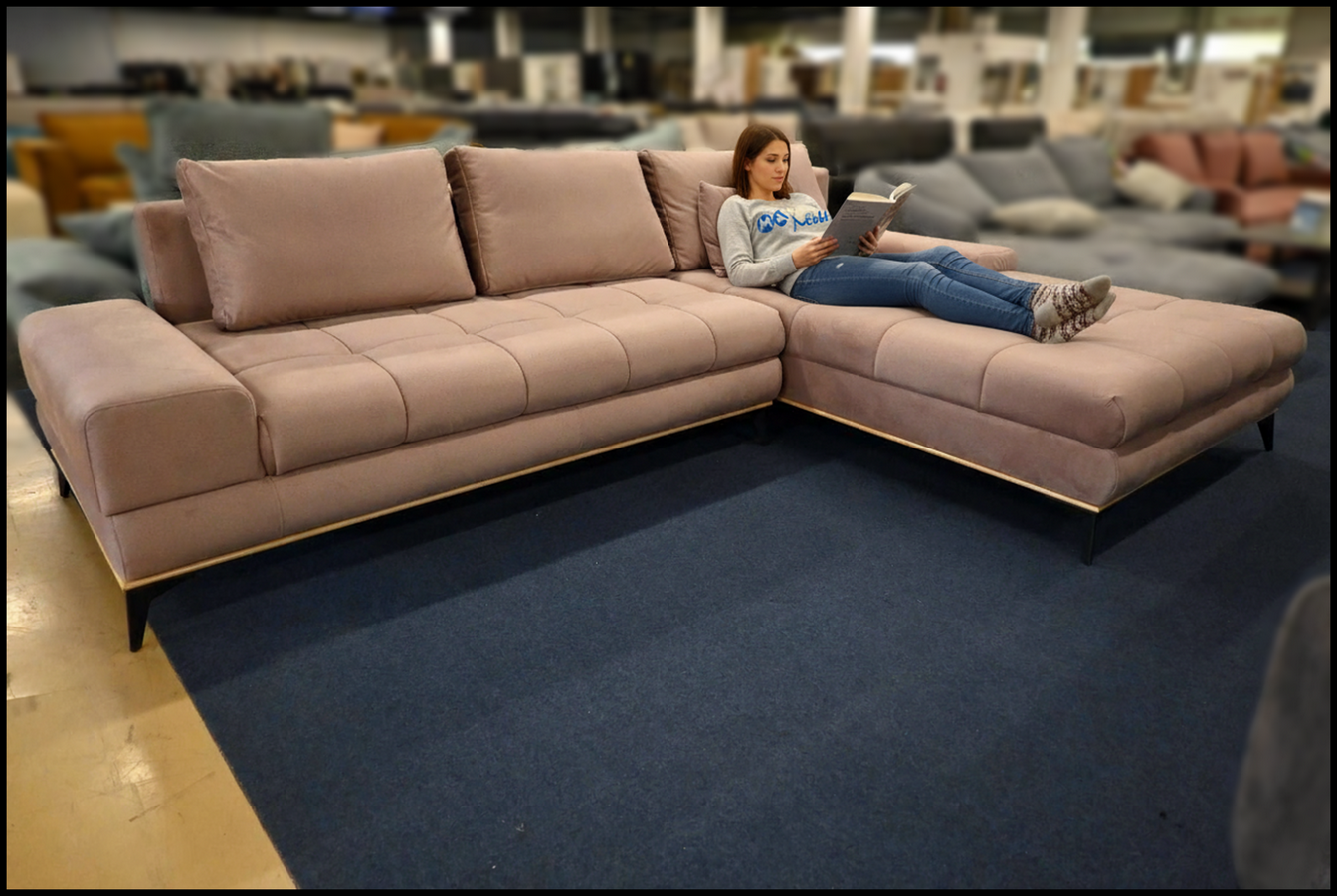 Benix Figaro / Windsor – luxuriöse Polsterecke in Rosé mit Samtbezug, Bettfunktion und erstklassigem Komfort.