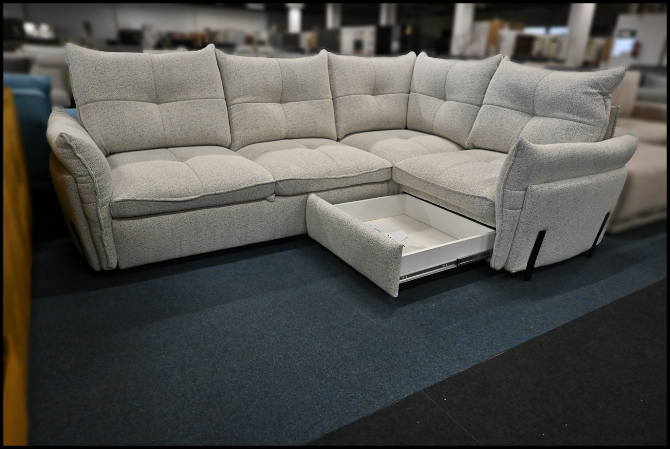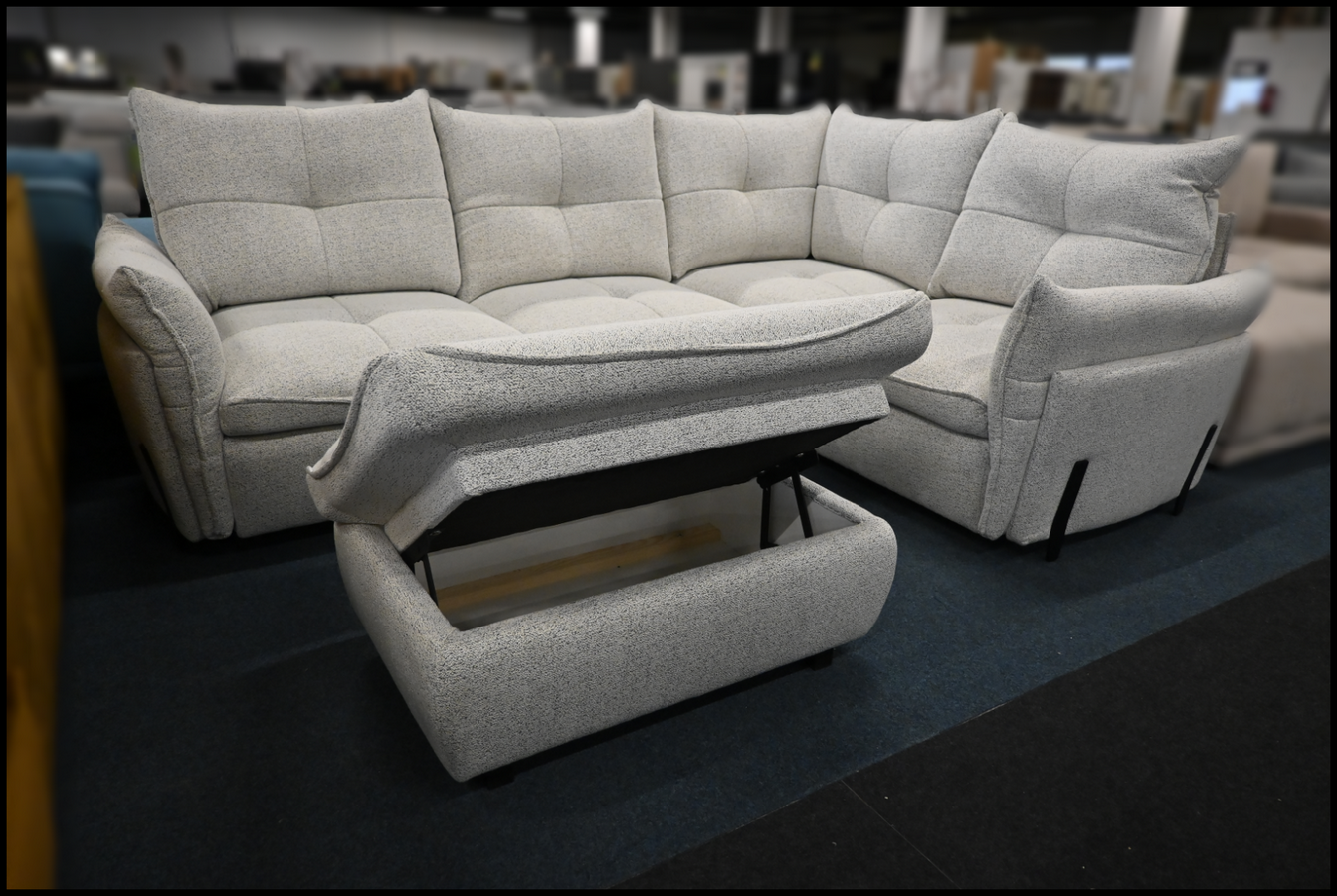 Eckgarnitur Benix Almeria Webstoff Natur mit Schlaffunktion und Stauraum