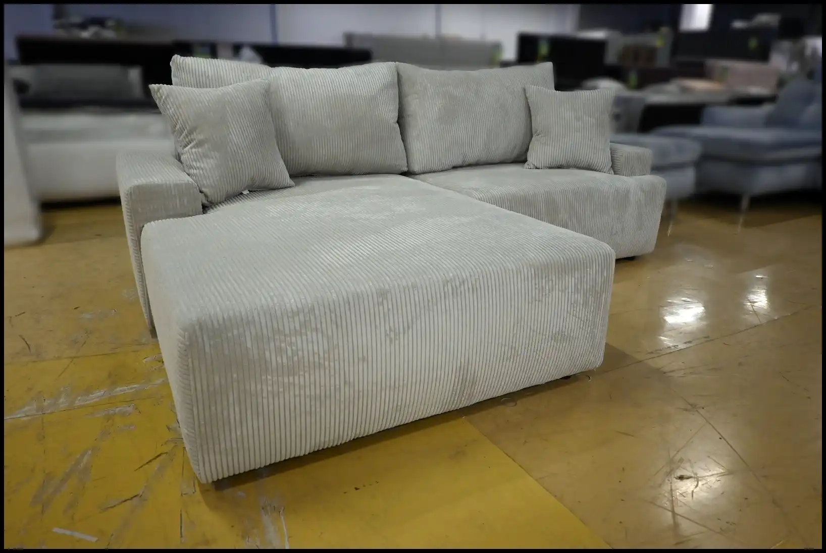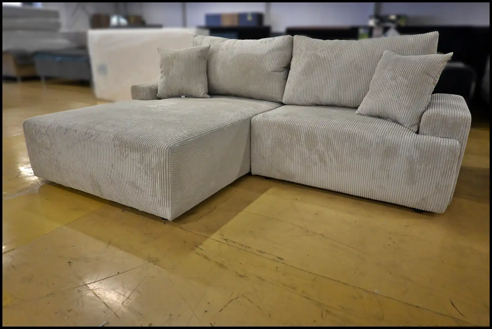 Eckgarnitur Orinoco Grau-Beige – Cord Sofa mit Bettfunktion