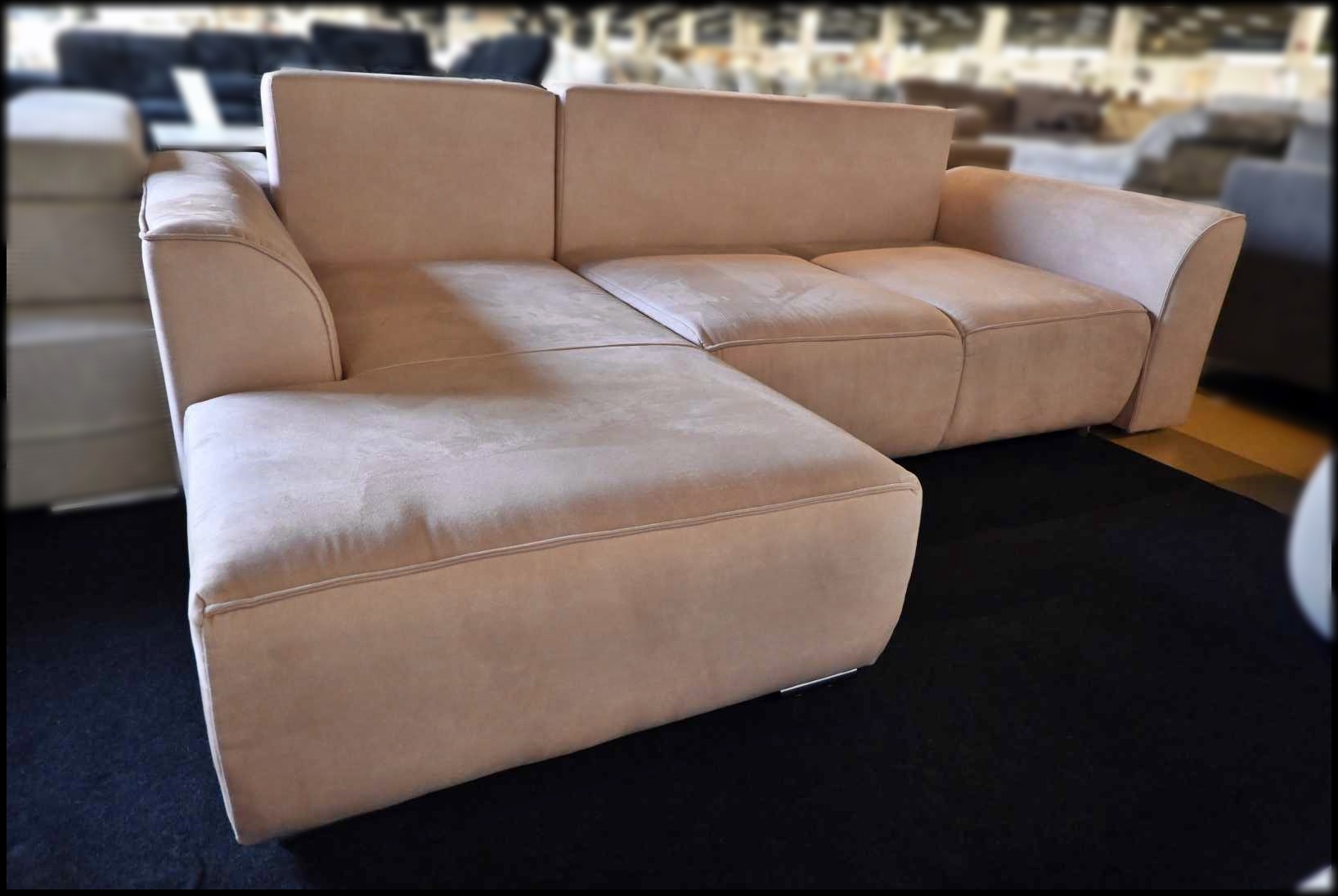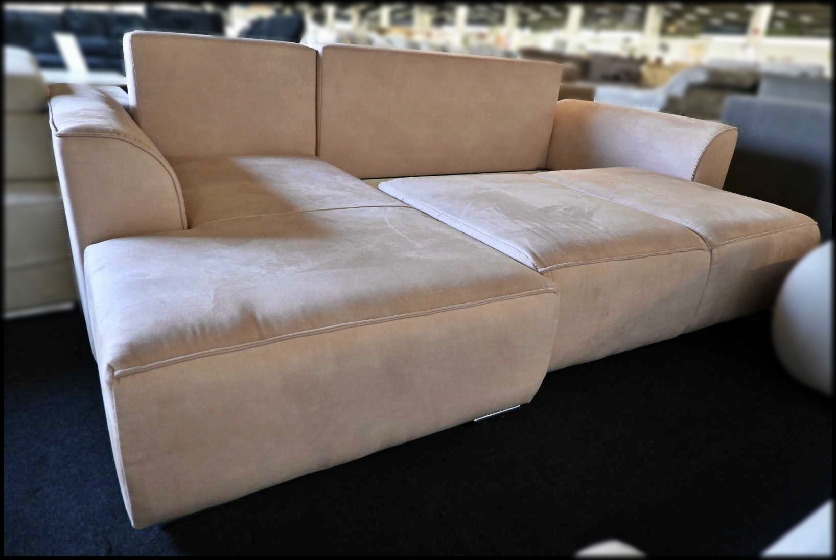 Eckgarnitur Samtoptik graubeige – Sofa mit Bettfunktion
