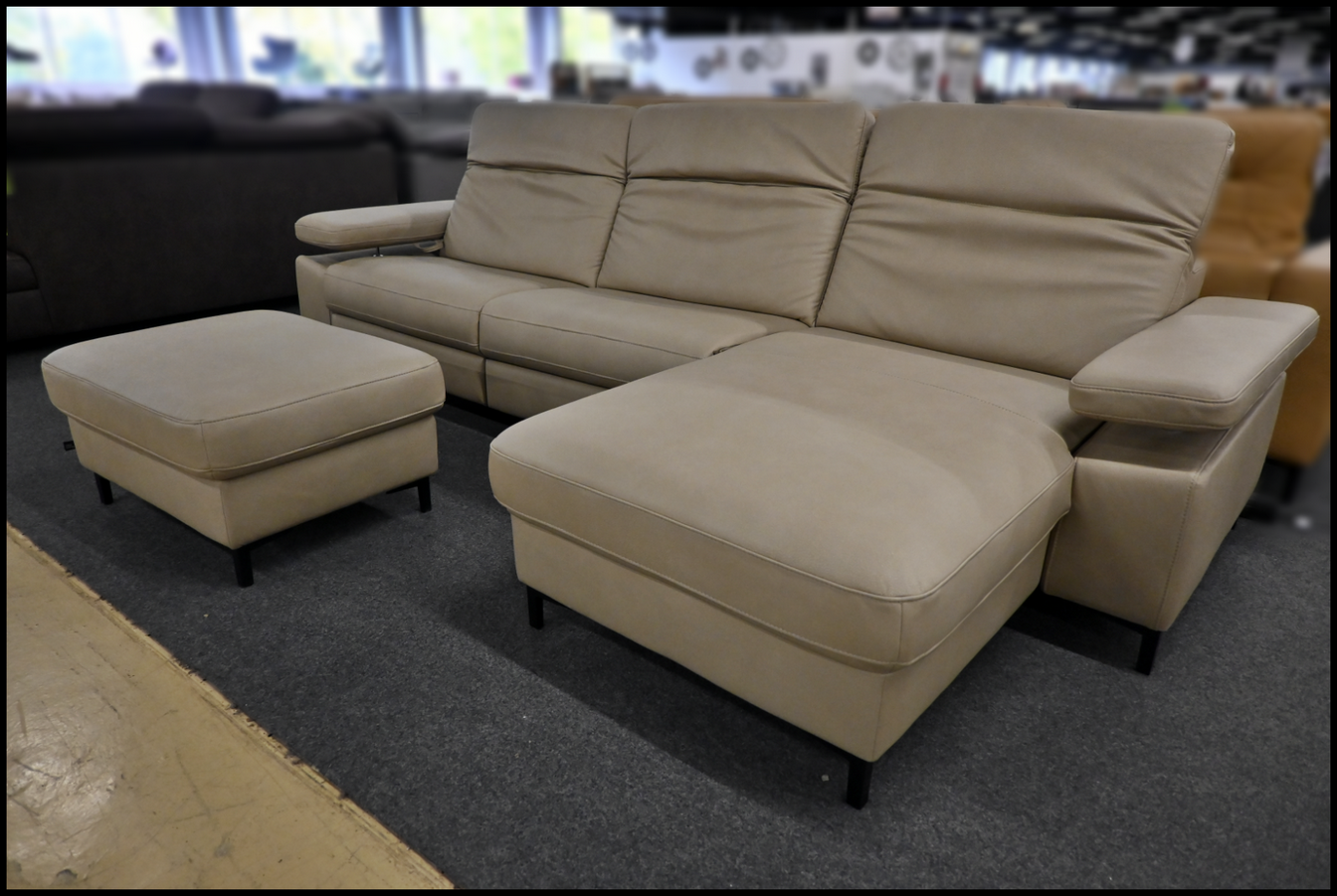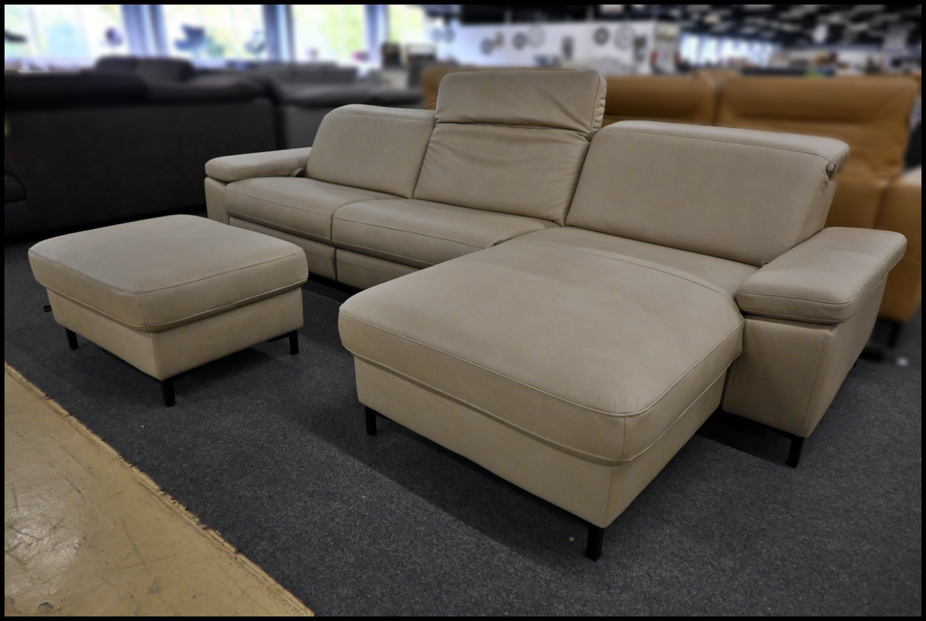 Hukla Polsterecke mit Galero Punto Bezug Desert – Sofa mit 4-Motor-Relaxfunktionen