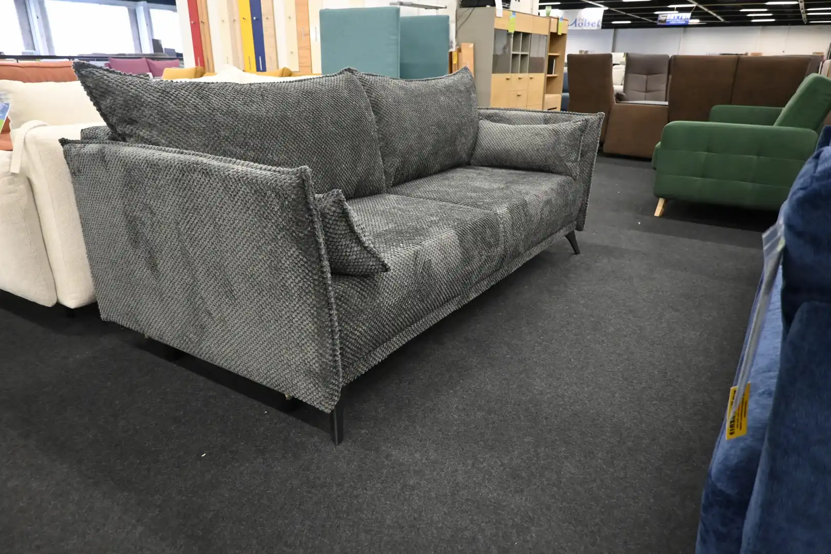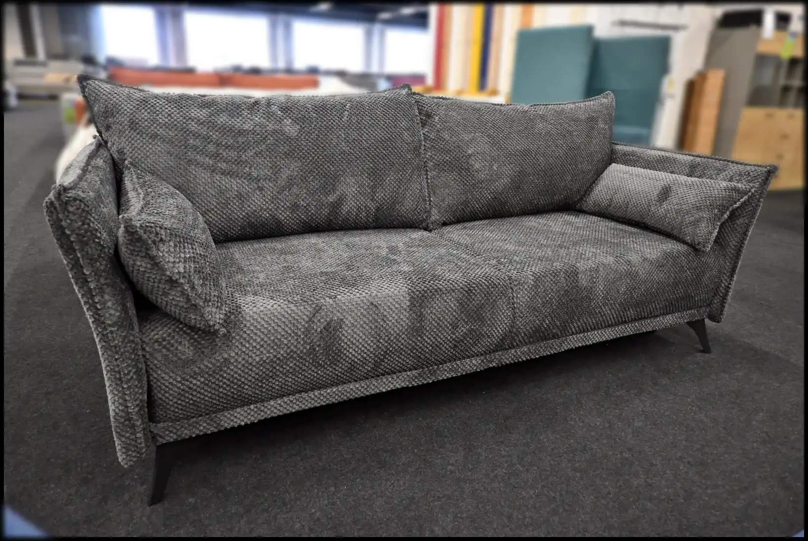 Schlafsofa Merry Grau – DOT Bezug mit Bettfunktion & Bettkasten