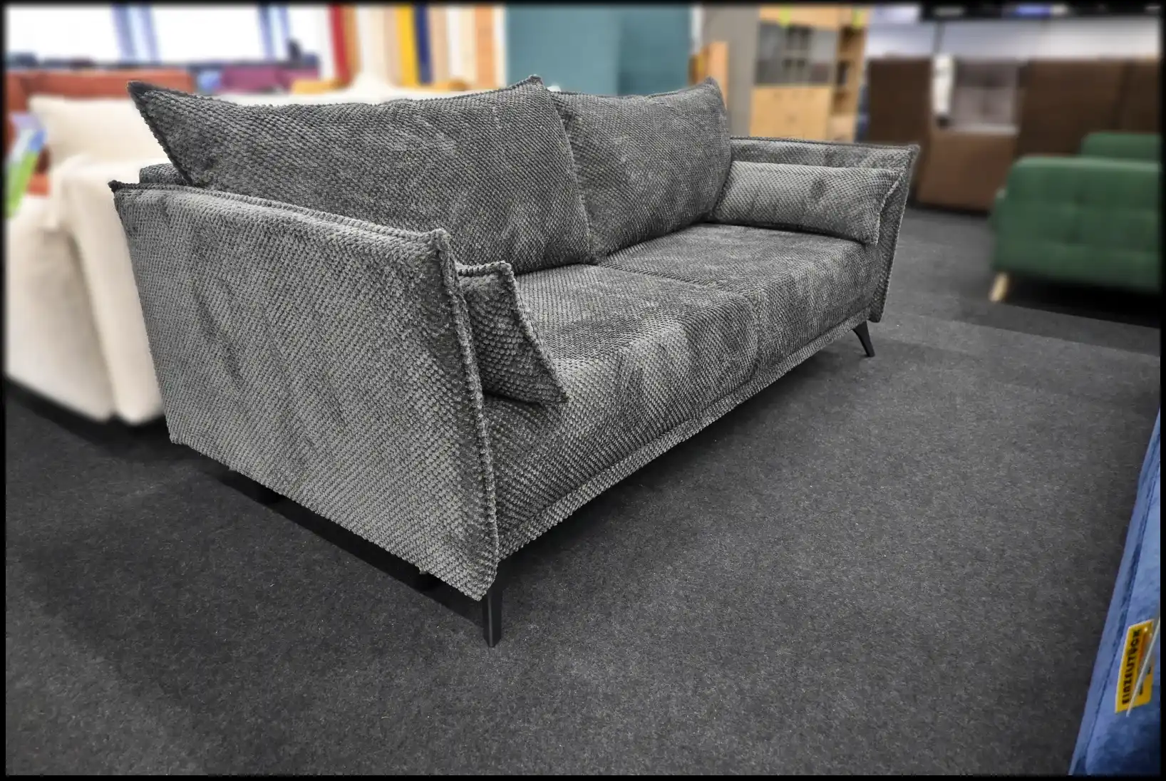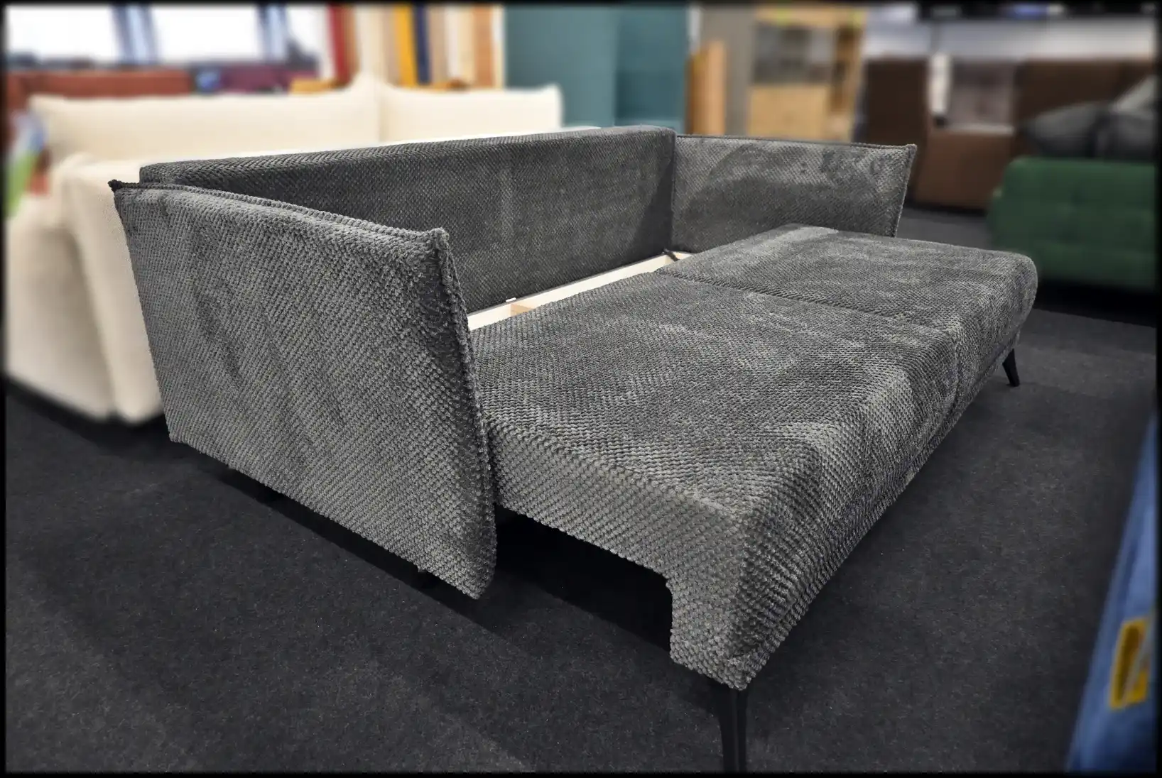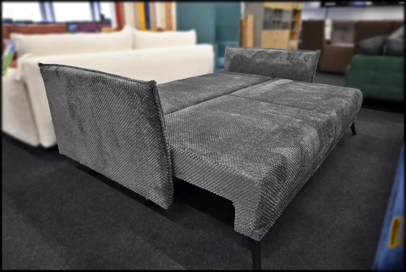 Das Schlafsofa Merry punktet mit seiner praktischen Bettfunktion – mit wenigen Handgriffen verwandelt es sich in eine komfortable Schlaffläche. Der integrierte Bettkasten bietet zusätzlichen Stauraum für Bettwäsche, Kissen und weitere Textilien. So bleibt Ihr Wohnraum ordentlich und aufgeräumt. Das Sofa ist auch in verschiedenen Farben zur Neubestellung erhältlich, sodass Sie Ihre Lieblingsfarbe wählen können.
