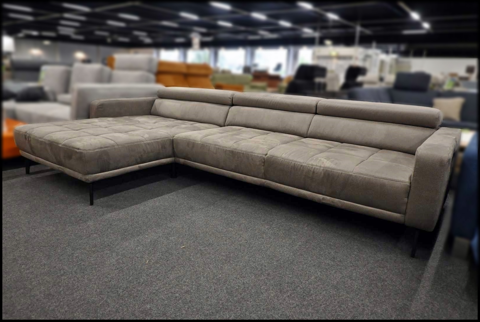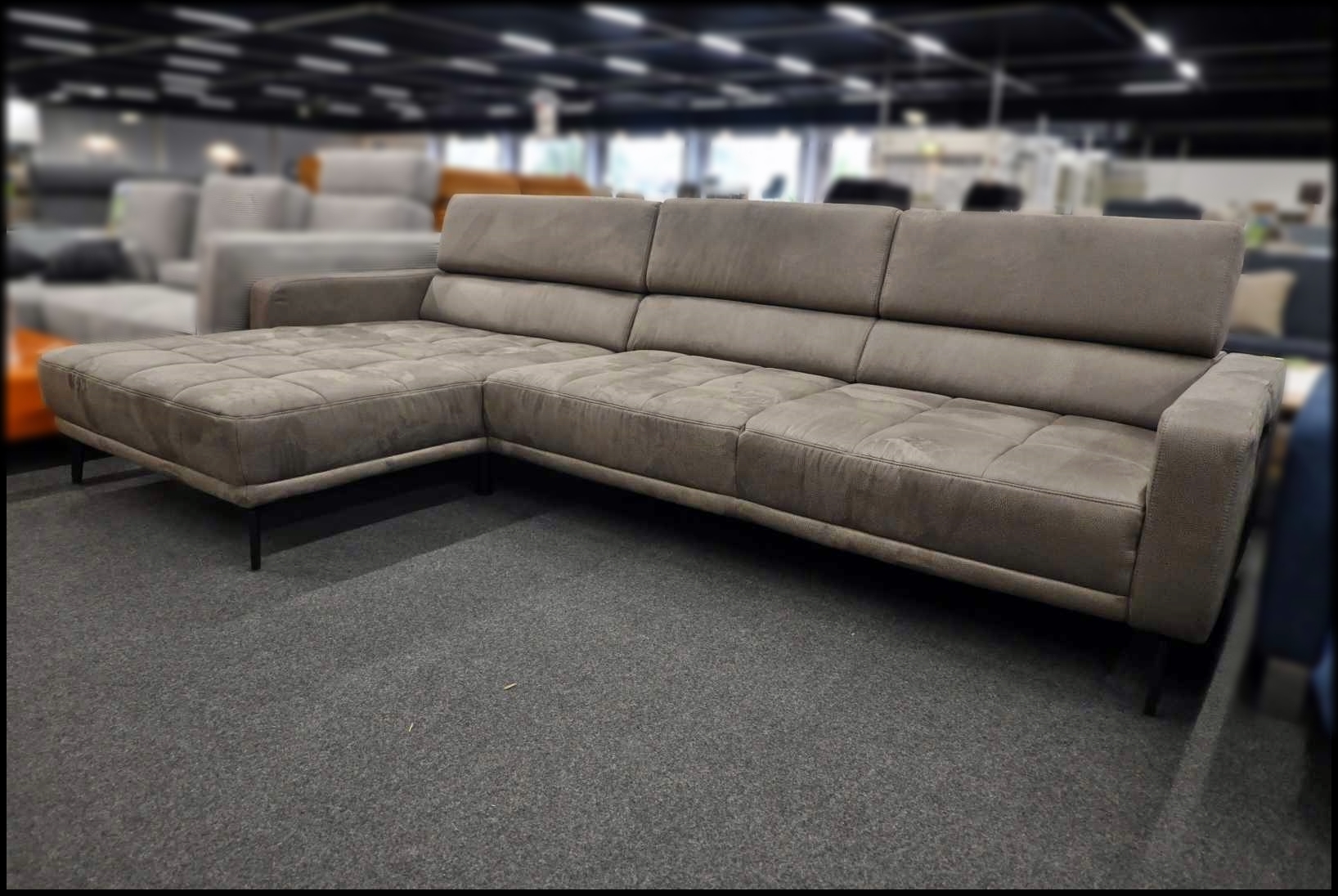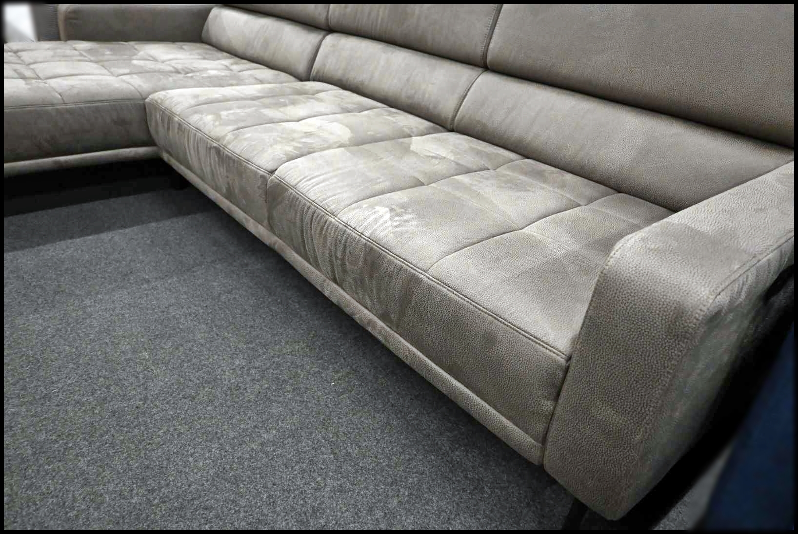 Mit einem Stellmaß von ca. 325 x 185 cm bietet das XL Sofa viel Platz für Familie und Gäste. Durch den komplett bezogenen Rücken ist das Ecksofa frei im Raum stellbar und flexibel platzierbar. Die schlanken Metallfüße in Chrom unterstreichen den modernen Look. Es handelt sich um ein gepflegtes Ausstellungsstück mit attraktivem Preis-Leistungs-Verhältnis.