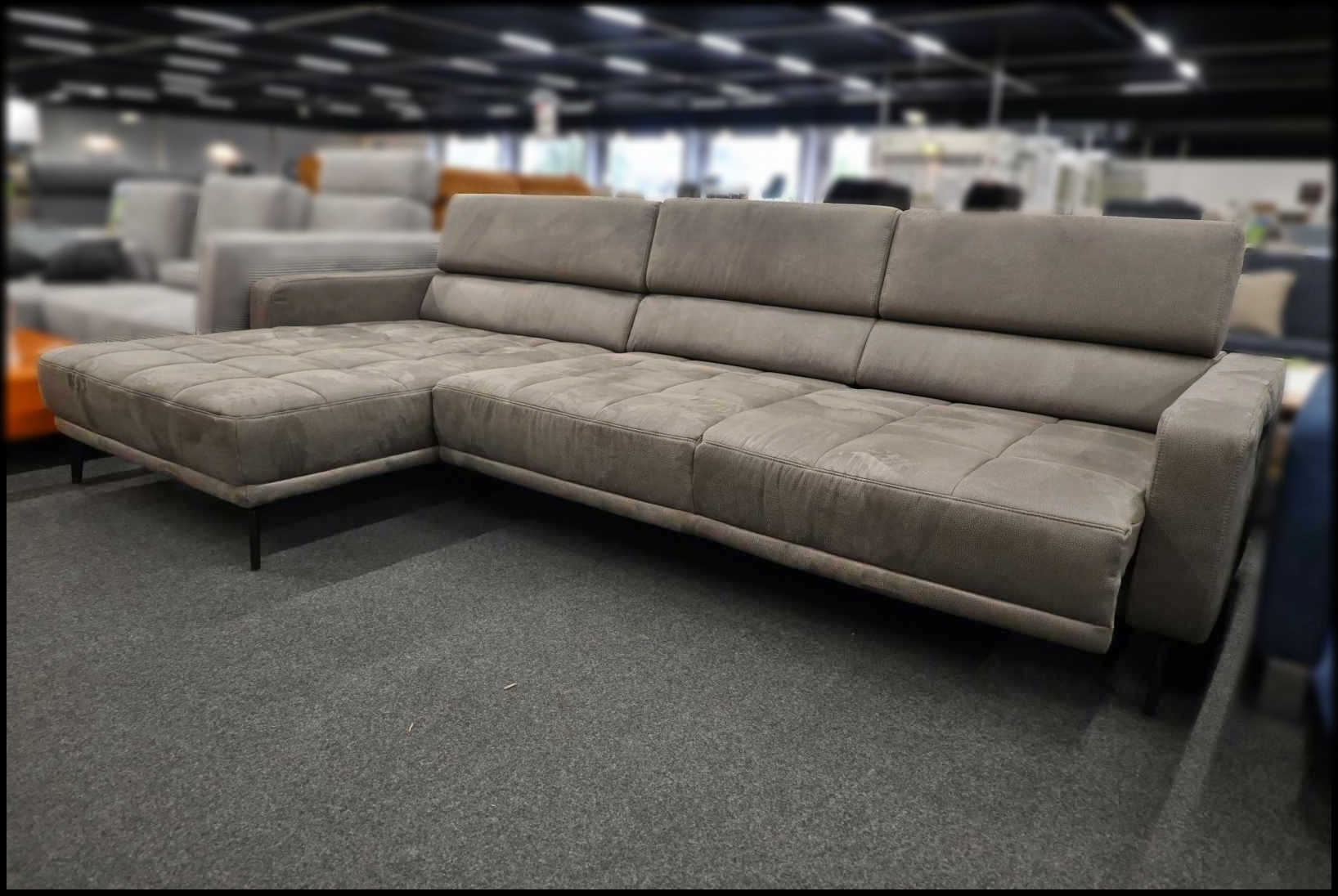 Zehdenick XL Ecksofa Holiday – großzügiges Stone Sofa mit Federkern, elektrischer Vorziehbank und verstellbaren Kopfteilen.